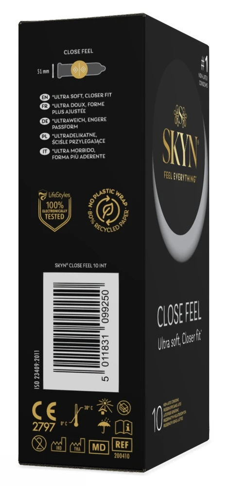 SKYN Close Feel – jemné, veganské kondomy bez latexu z materiálu Sensopren pro realistický pocit a maximální blízkost.