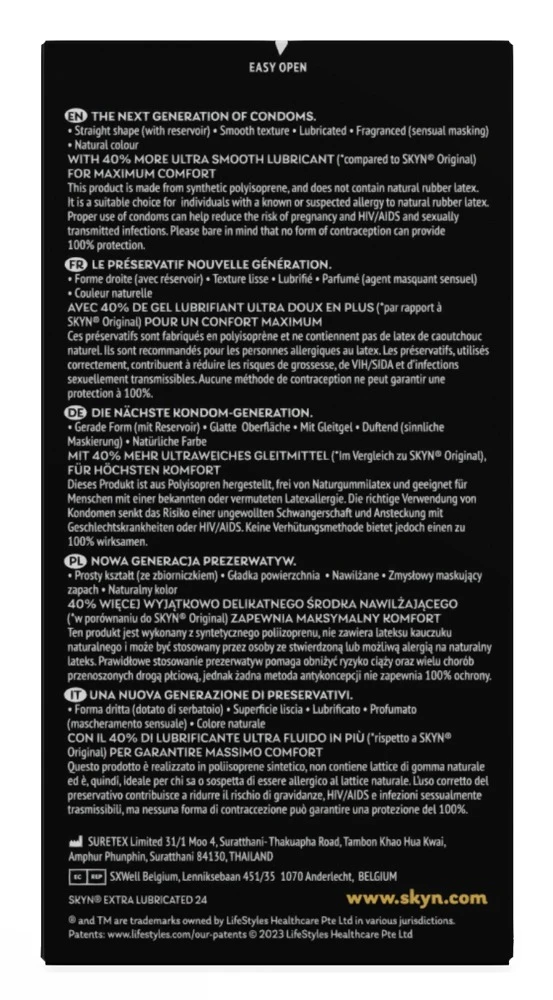 Skyn Extra Lubricated bezlatexové extra lubrikované - 24 kusů